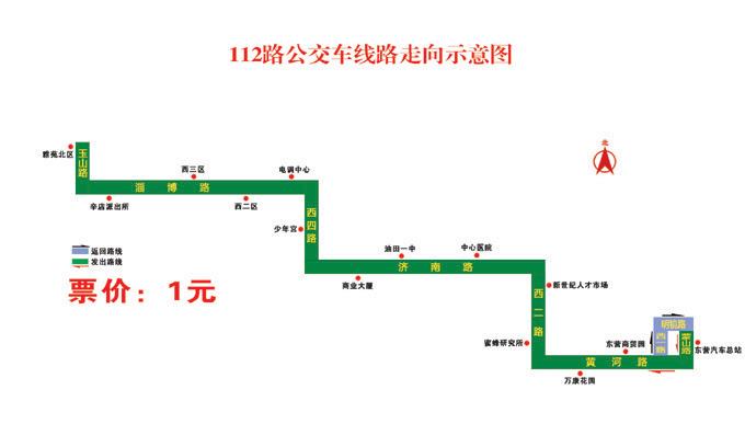 112路:自東營長途汽車總站始發(fā),途經蒙山路、黃河路、西二路、濟南路、西四路、淄博路、玉山路、到達終點站雅苑北區(qū),票價不變,仍為1元/人次;